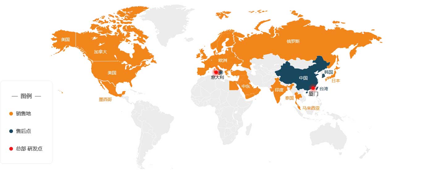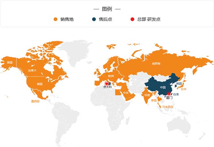 售后據(jù)點:中國、意大利、臺灣、韓國